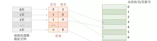 操作系统以页框为单位为进程分配内存。进程的每一个页面可以被放入任意空闲页框中,页面之间无需连续存放,也不必按照顺序排列,可以分布在内存的不同位置。