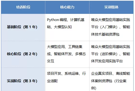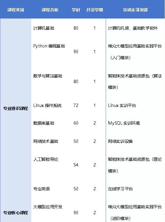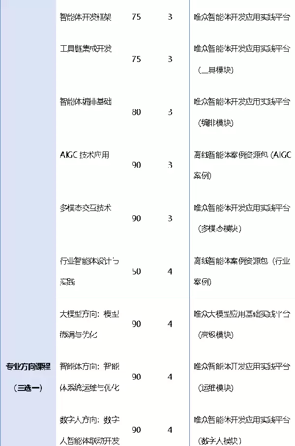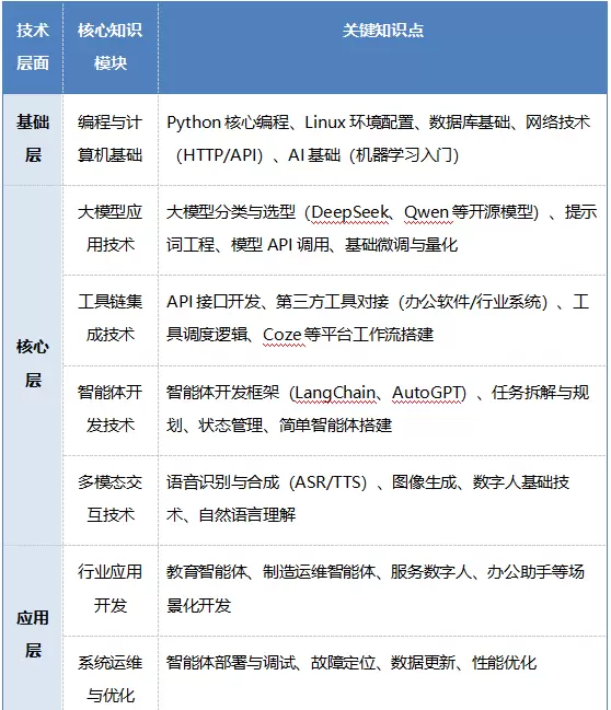 核心课程:智能体开发框架、工具链集成开发、智能体编排基础、智能体系统运维、云计算与容器化