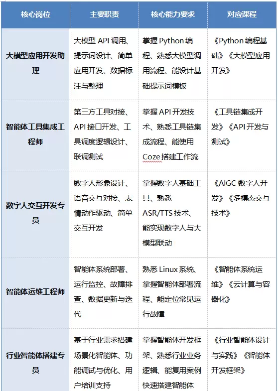 就业去向:智能体开发工程师、工具集成专员、智能体运维工程师