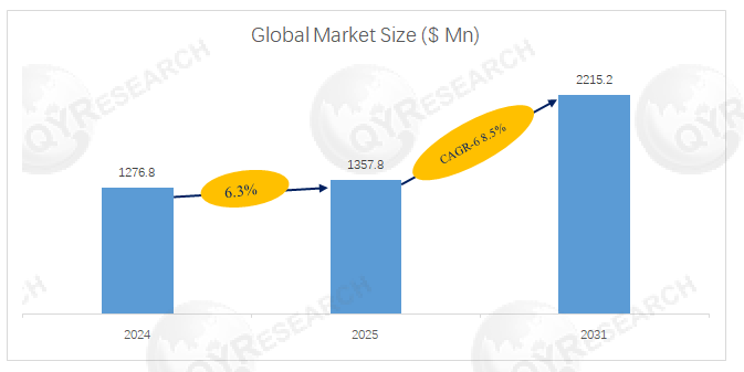 根据QYResearch调研数据显示,2024年全球市场规模达12.77亿美元,2025年将增至13.58亿美元,2025-2031年复合增长率(CAGR)预计达8.5%,增长动力强劲。