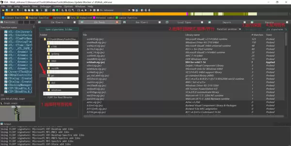 分别打开函数窗口、符号名称窗口、段窗口、结构体、枚举等辅助视图,支持全局分析 |