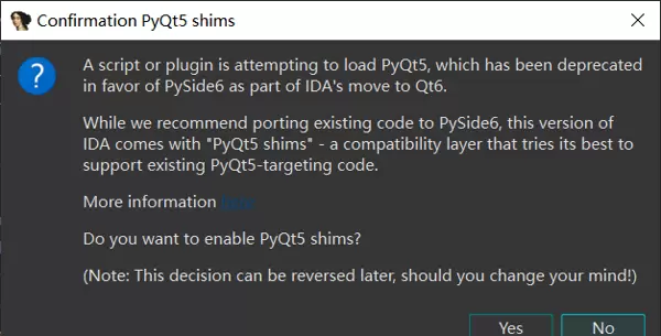 当前版本不直接支持IDA 9.2,需启用PyQt5 Shims兼容模式方可使用。
