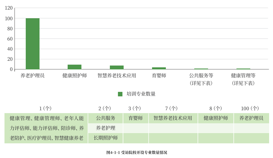 一方面,院校积极回应市场最迫切的人才需求,推动专业体系向多样化演进。“养老护理员”专业已实现100所调研院校的全覆盖,直接对接当前居家、社区和机构养老对基础照护人力的刚性缺口。