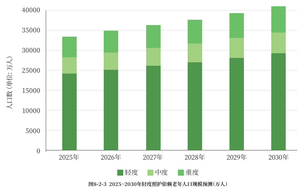 轻度/中度依赖老人规模最大,是养老服务需求的基本盘,也是照护体系的核心短板,要求大幅扩充普惠型社区与居家上门的服务能力。而重度依赖群体28%的迅猛增幅,直接考验专业护理床位供给、长期照护人才队伍及医养结合服务的承接能力。