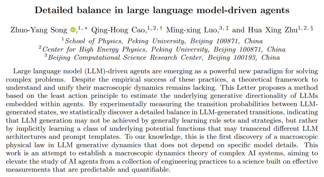 LLM 智能体很赞,正在成为一种解决复杂难题的强大范式。 不过,这种成功目前更多还停留在「经验主义」的工程实践层面 —— 我们知道它好用,但往往不知道它在宏观上为何如此运作。那么,我们是否能找到一个理论框架,像物理学描述自然界那样,去理解和统一智能体的宏观动力学(macroscopic dynamics)?