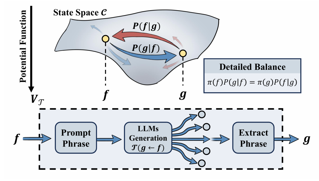 简单来说,他们通过实验测量了 LLM 生成状态之间的转移概率。基于此,他们在统计上发现了 LLM 生成转移中的细致平衡 (detailed balance) 现象。