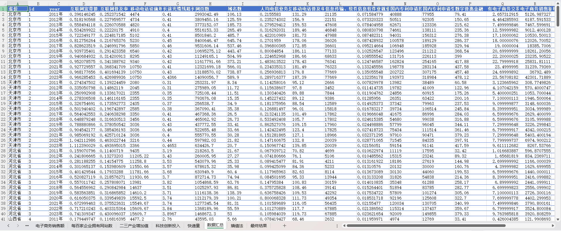 | 数据说明 | 包括原始数据、处理过程、数字经济结果 |