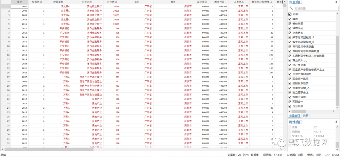 | 数字化转型B | 参考赵宸宇(2021),用年报词频 + 1的对数,衡量上市公司数字化转型程度(点击查看) |