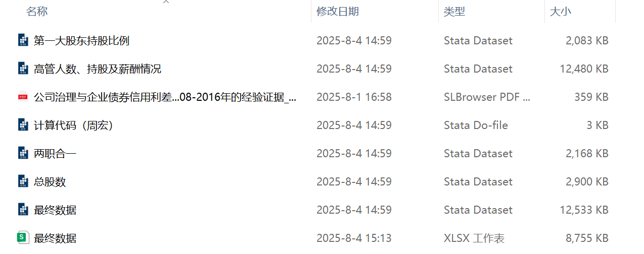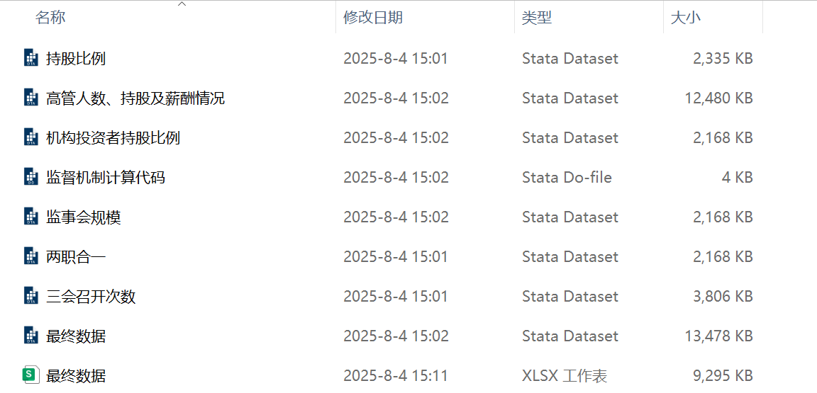 公司治理水平通常指企业内部管理结构与制度运行的规范性、透明性与效率程度,反映企业内部治理结构、权责划分及其对外部投资者利益的保障能力,是衡量公司规范运作和提升市场信任度的重要参考依据。本分享数据采用2005 - 2024年上市公司数据,分别参考方红星和金玉娜(2013)、周宏等(2018)的研究方法对上市公司治理水平进行测算,包含原始数据、计算代码、最终结果、文献,以期对相关研究者提供数据支持。