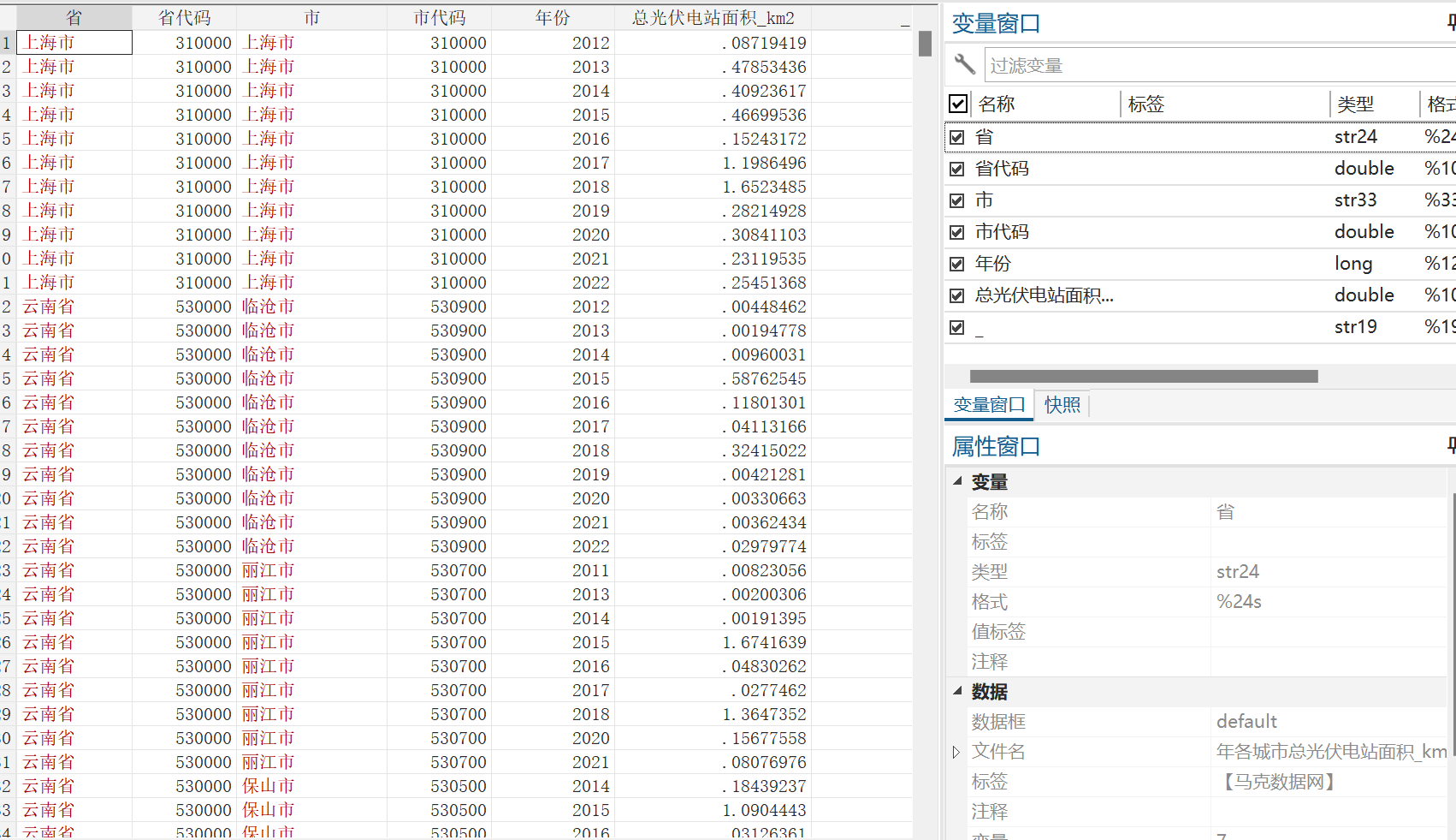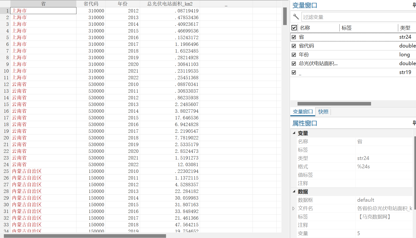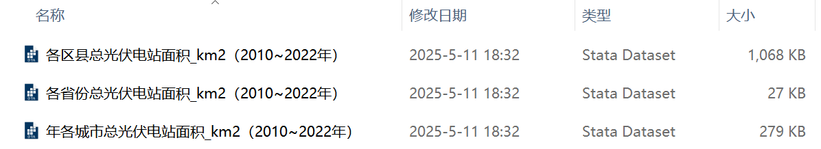 三、数据概览1、中国省、市、县总光伏电站面积数据文件概览
