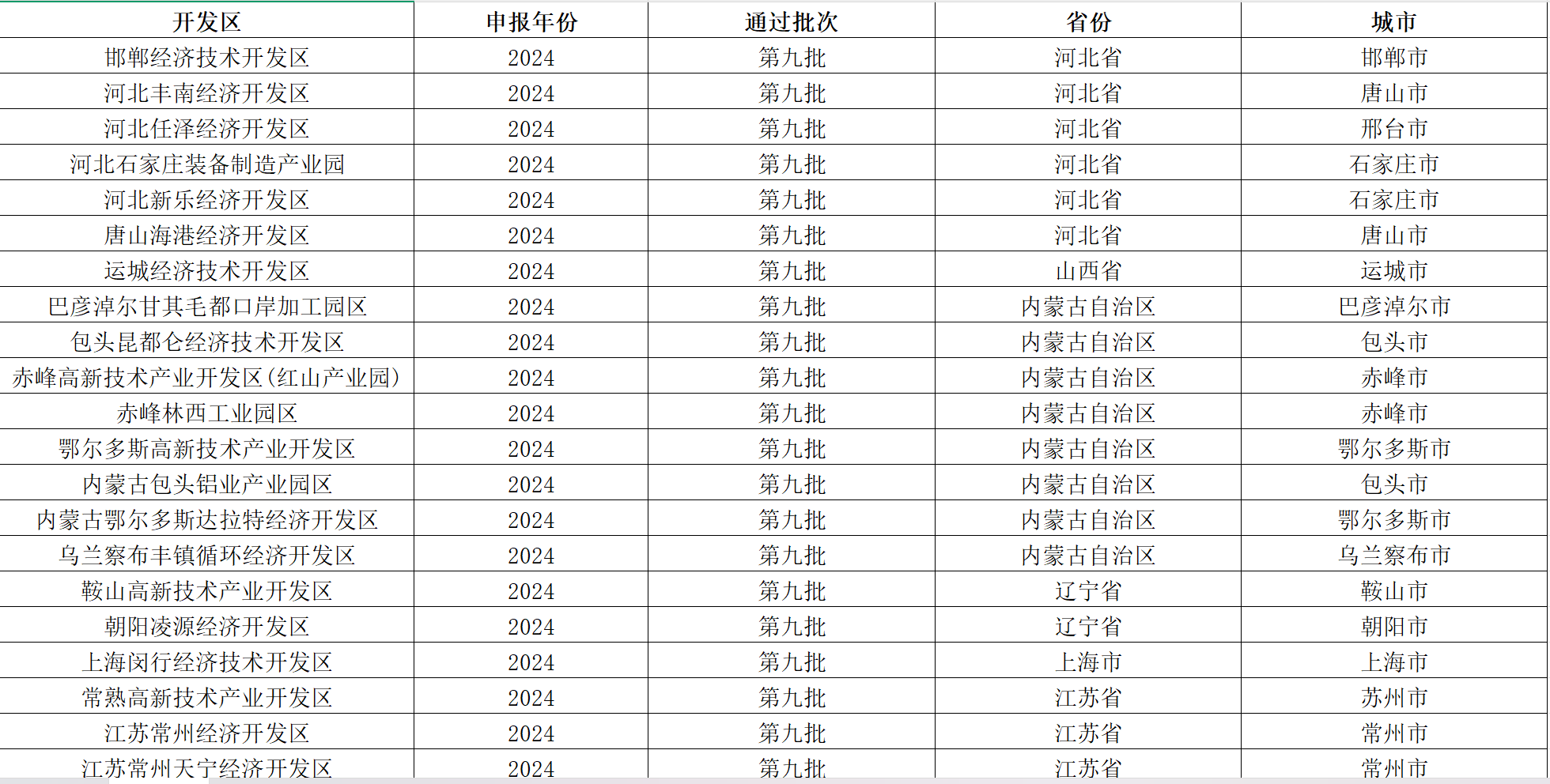 [td]开发区 | 申报年份 | 通过批次 | 省份 | 城市 |