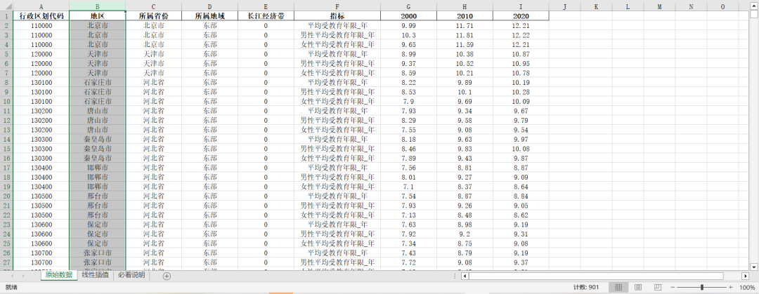 | 男性平均受教育年限 | 地区男性平均接受学历教育年数总和的平均值 |
