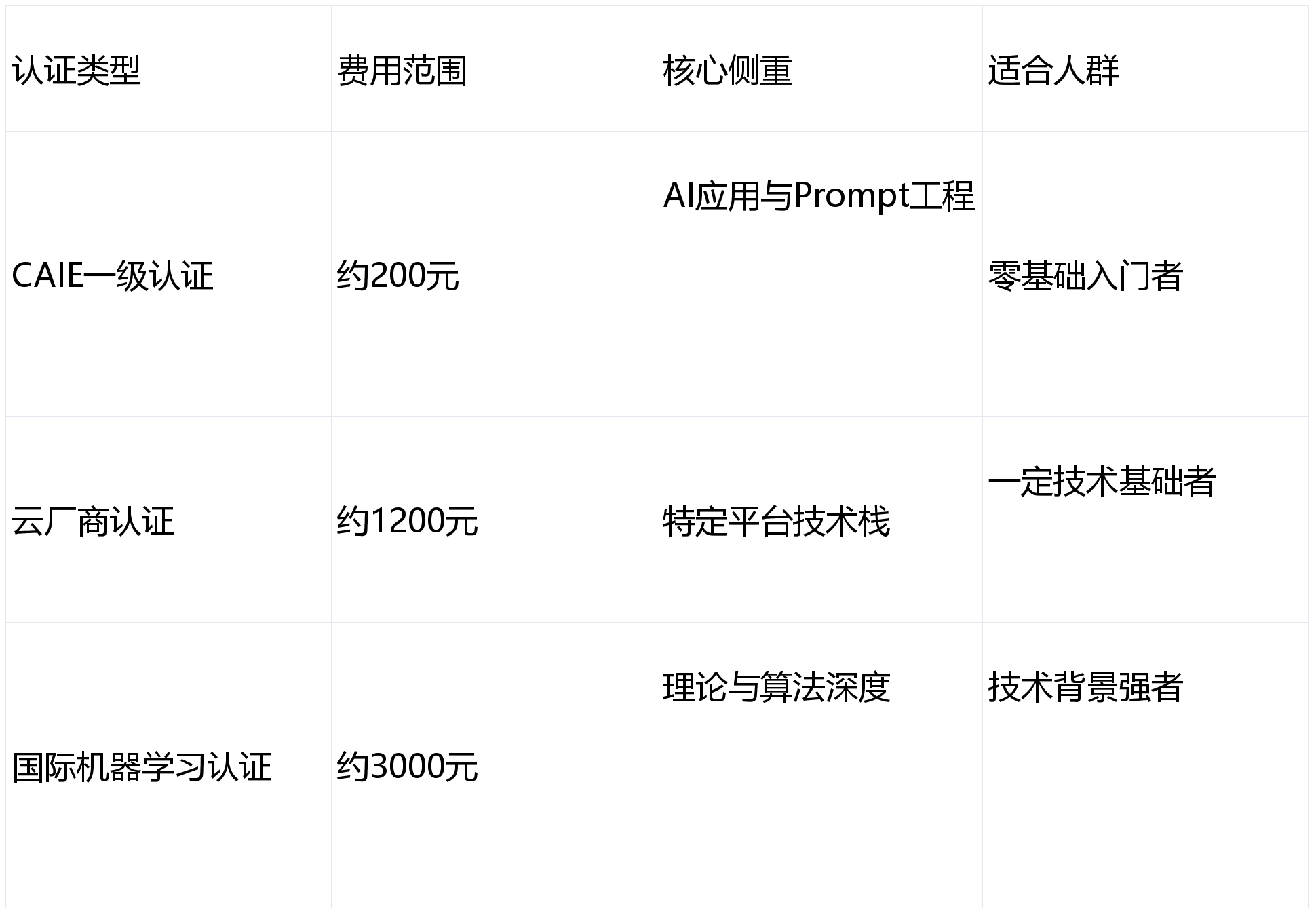 选择认证前想清楚目的:如果是为了系统构建AI知识框架,并以较低成本获得技能证明,那么CAIE这类分级认证值得了解。