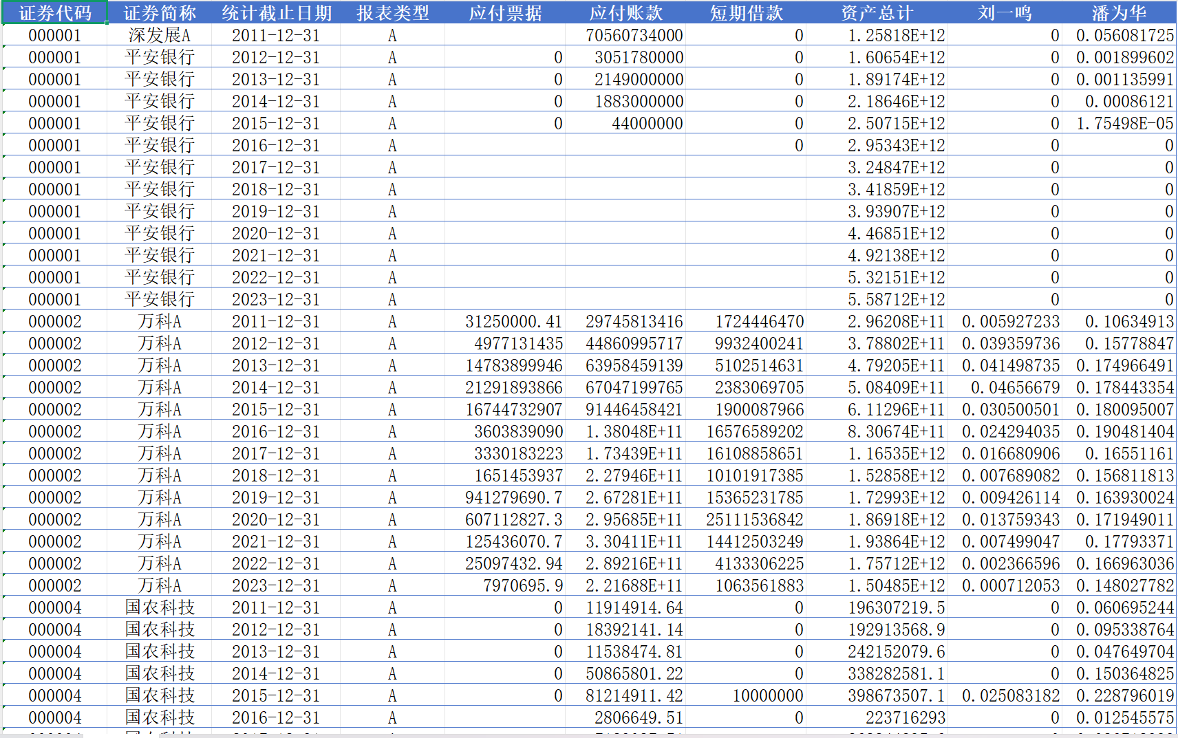 | 基础信息 | year、stock、IndustryName、Industry1、Industry2、Province、Province1、City、证券简称、报表类型、上市年份 |