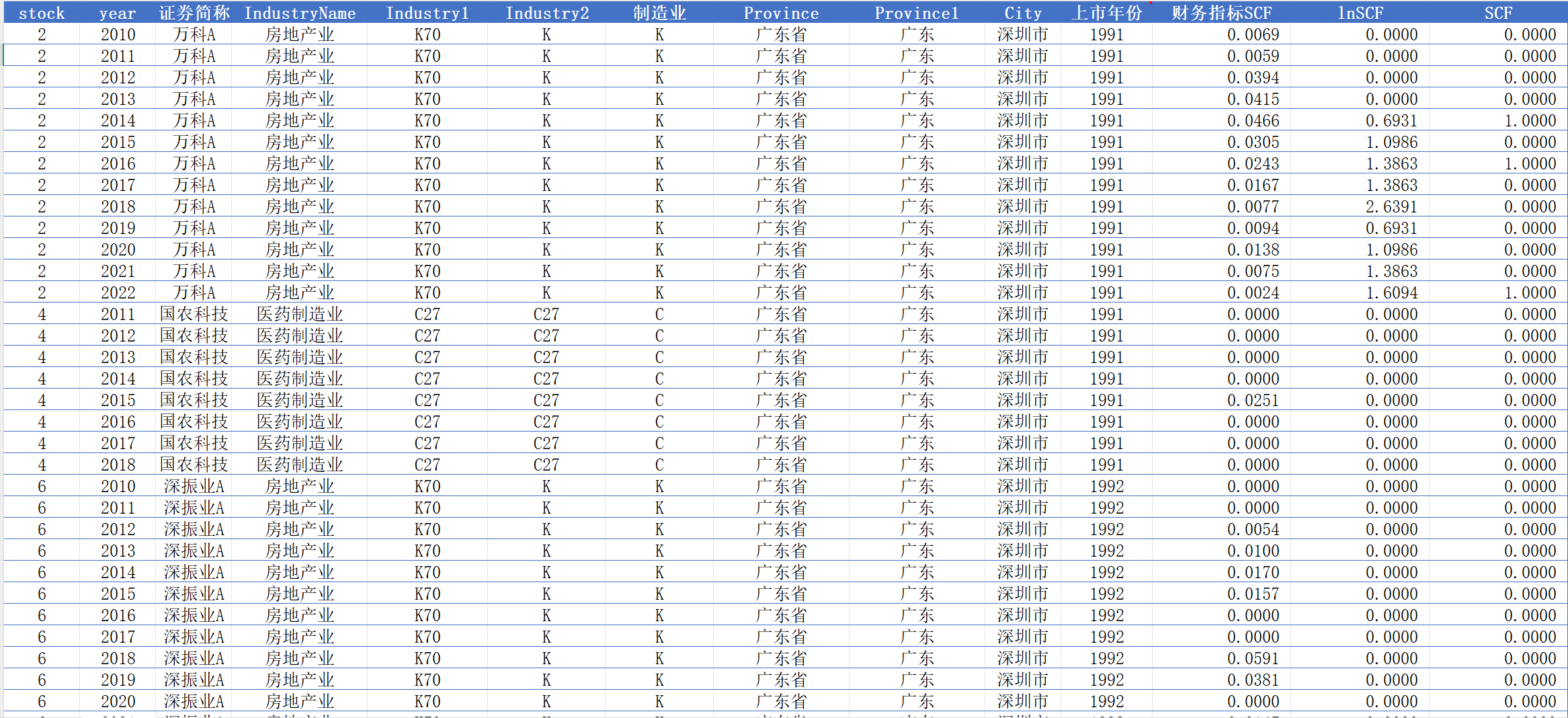 | 财务指标 | lnSCF、应付票据、应付账款、短期借款、资产总计、SCF、供应链金融水平指数 |