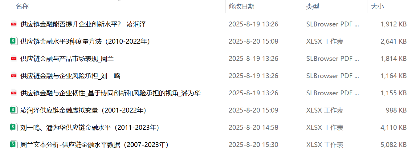 本分享参考凌润泽等(2021)、周兰和吴慧军(2022)、刘一鸣等(2025)、潘为华和罗永恒(2024)的计算方式,对上市公司2001 - 2023年的企业供应链水平进行测算,旨在为企业金融管理、风险承担及创新能力的研究提供数据支持。