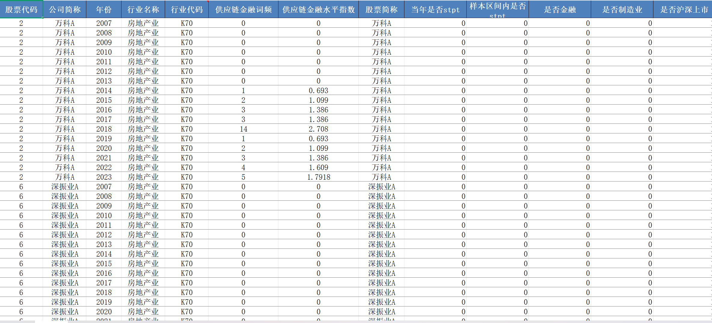 3、上市公司供应链金融水平数据-刘一鸣、潘为华版本
