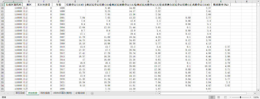 一、数据介绍- 数据名称:各地区(1990 - 2022年)结婚、离婚、再婚等数据
