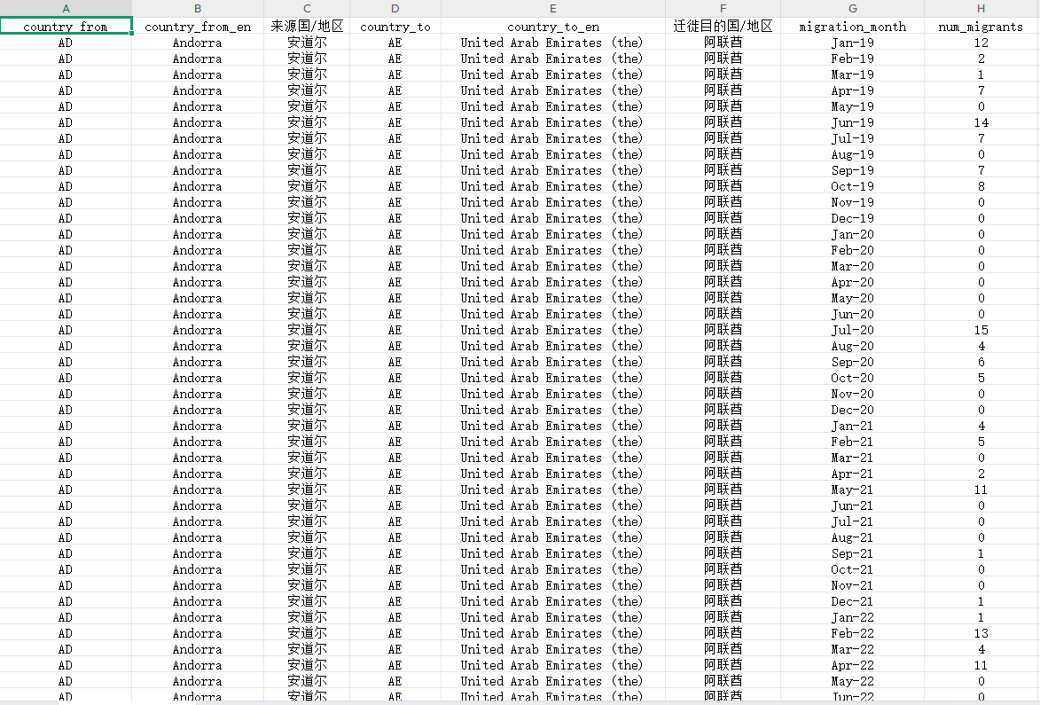 | 来源国/地区 | country_from、country_from_en | 迁徙的起始国家或地区 |