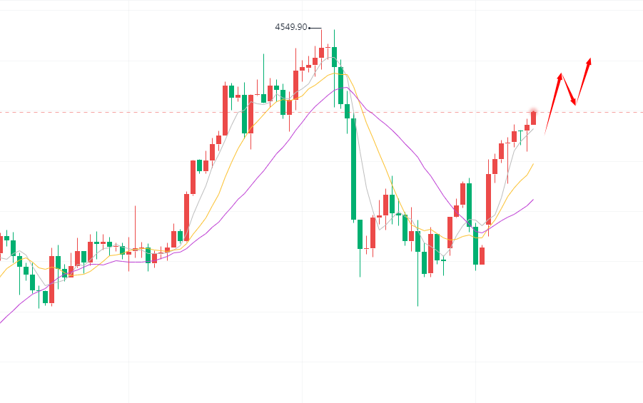 昨日金价强势反弹推动均线系统呈现拐头向上态势。日内下方首要关注均线系统的支撑效力,当前10日均线位于4410附近区域,5日均线则处于4375-4370区域。上方核心阻力需重点关注4550高点位置,该点位对后续走势具有关键指引作用,后续行情结构的关键锚点已明确。