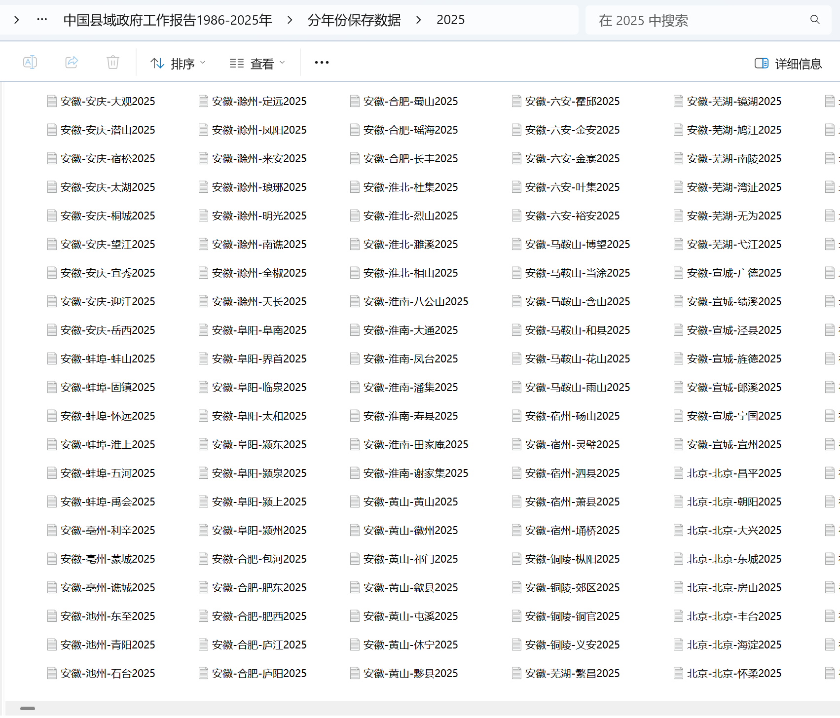 本数据整理了1998-2025年间,共2737个县域的政府工作报告文本,将原始文本保存为txt格式,同时也整理了csv格式的面板数据,便于研究人员使用。