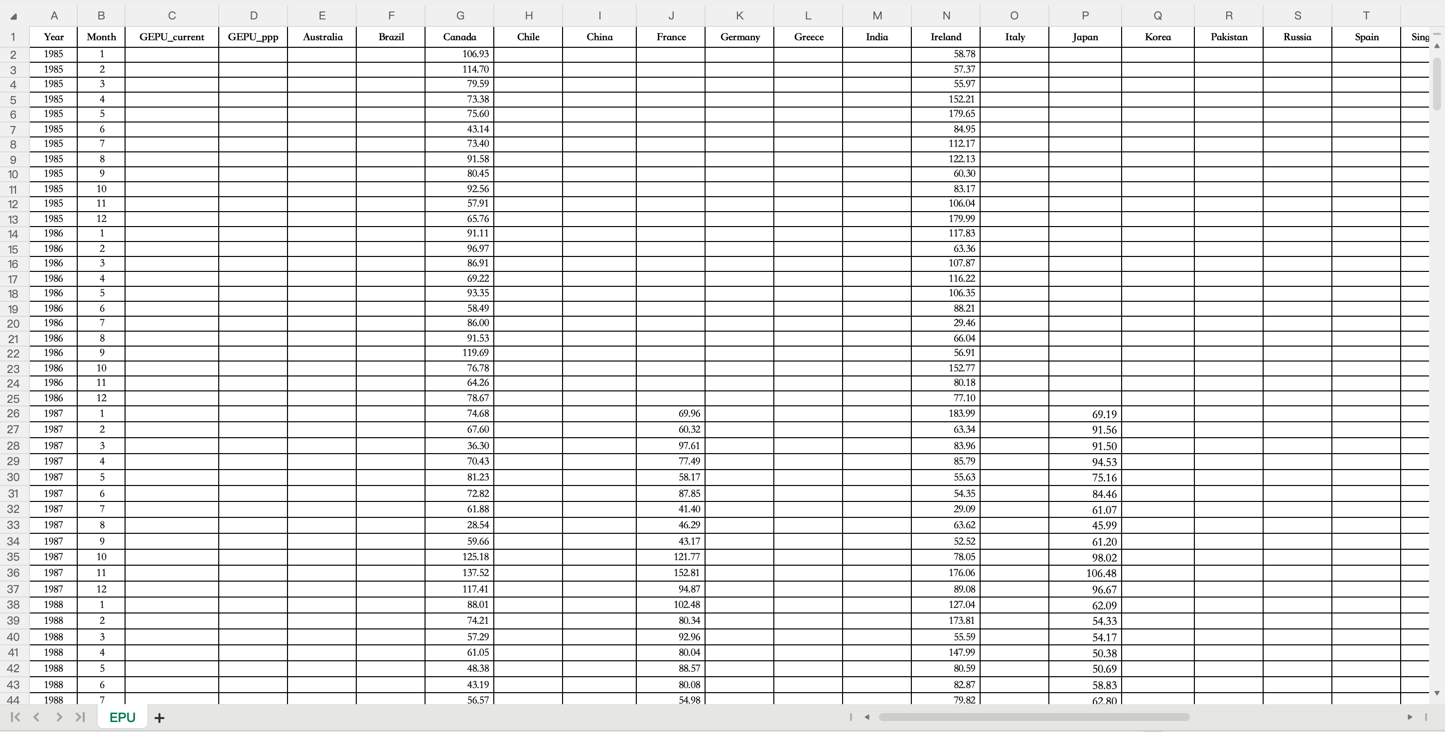 【数据集】世界各国经济政策不确定性指数数据集(1985.1-2026.1)