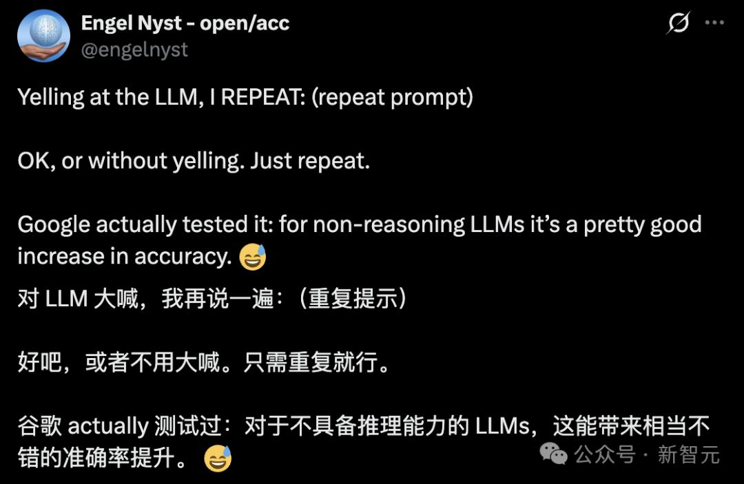 也许不久之后,后台的推理引擎就会悄悄把我们的提示词翻倍后再发给模型。