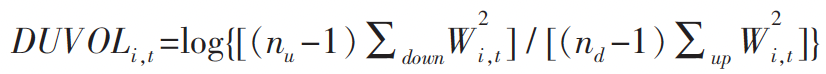 式(3)中,nu和nd分别代表公司i的股价周特有收益率Wi,t大于和小于其年平均收益率Wi的周数。DUVOL的值越大,代表收益率的分布越左偏,股价崩盘风险越大。