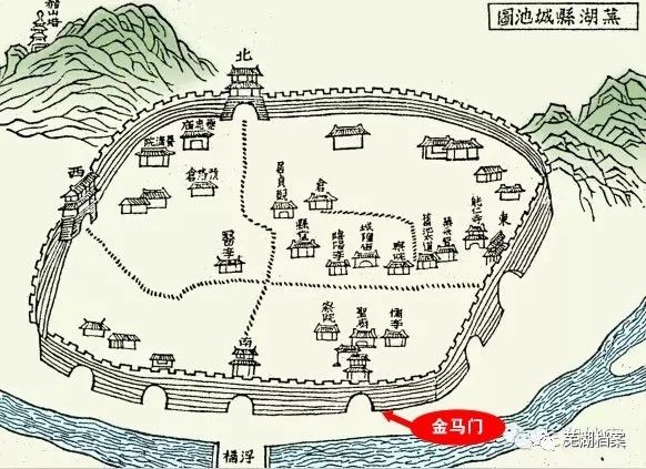 图为芜湖古城图中标志的“金马门” 图片来源芜湖档案