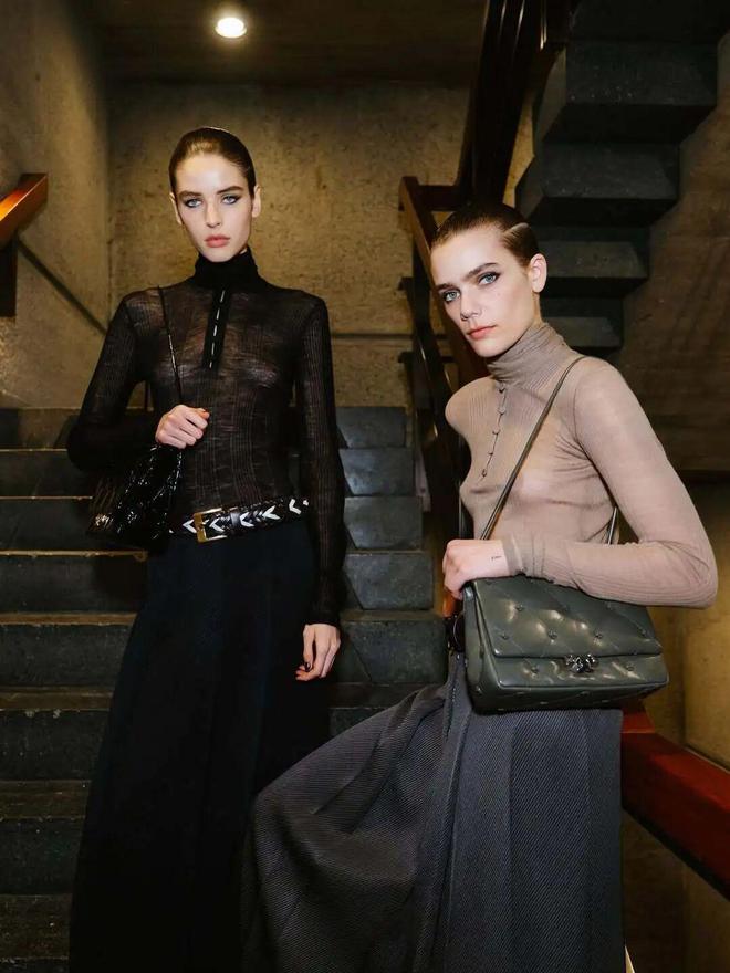 有意思的是,品牌刻意用柔软的天然面料去塑造雕塑感的廓形,让精致的胸衣、复古的西装与利落的肩线并置。