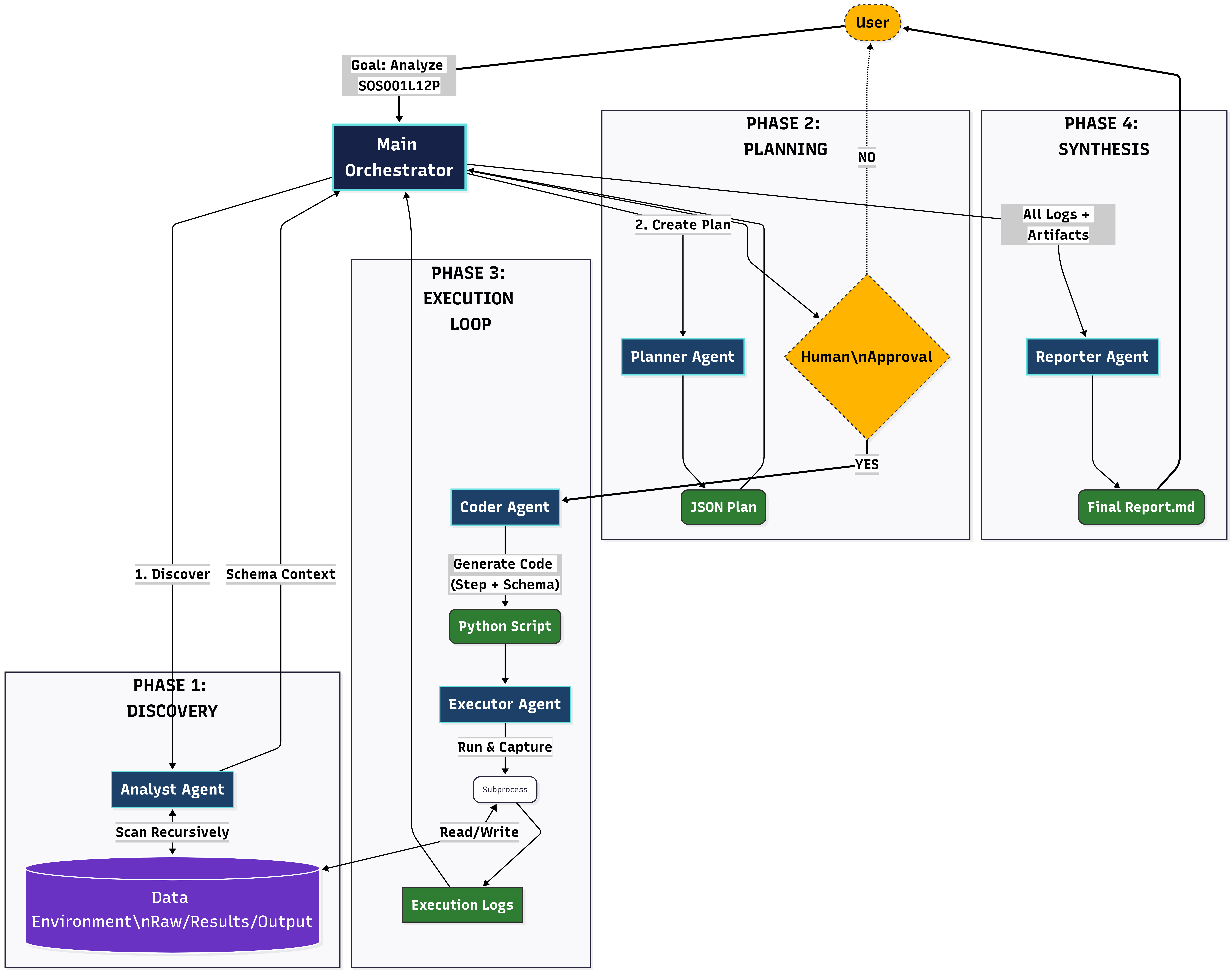 执行智能体在受控环境中运行生成的脚本。为此,它会捕获标准输出(stdout)和标准错误(stderr)。如果脚本运行失败(例如出现“文件未找到(FileNotFound)”错误),日志将提供反馈循环以支持潜在的自我修正(不过由于分析师智能体提供的上下文支撑,这种情况实际上很少发生)。