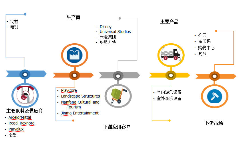 高端游乐设备产业链上游主要涉及钢材、铝材、复合材料、机电元件、电控系统、传感器、电力驱动设备等原材料及核心零部件的供应,代表企业包括宝钢、鞍钢、ABB、施耐德电气、三菱电机等;中游为设备设计、机械制造及集成厂商,负责零部件组装、配套安全系统、主题场景及控制软件集成,代表企业包括英泰明、威克玛、格斯特劳尔、金马娱乐、南方文旅等;下游为各类主题公园、度假村、购物娱乐综合体、家庭娱乐中心的运营商,代表客户包括迪士尼、环球影城、华侨城、长隆旅游度假区等。产业链上下游紧密结合,形成从材料供应到设计制造、运营应用的完整生态系统。