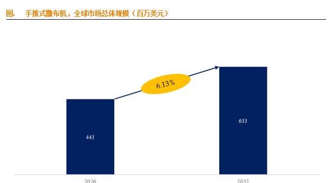 全球手推式撒布机(Walk Behind Spreader) 市场正保持稳健增长态势。2025 年全球市场规模约 4.20 亿美元,预计到 2032 年将增至约 6.33 亿美元,在 2026–2032 年期间的复合年均增长率(CAGR)约为 6.13%。随着园林绿化、农牧业现代化和冬季道路维护等领域的发展,手推式撒布机需求持续攀升。