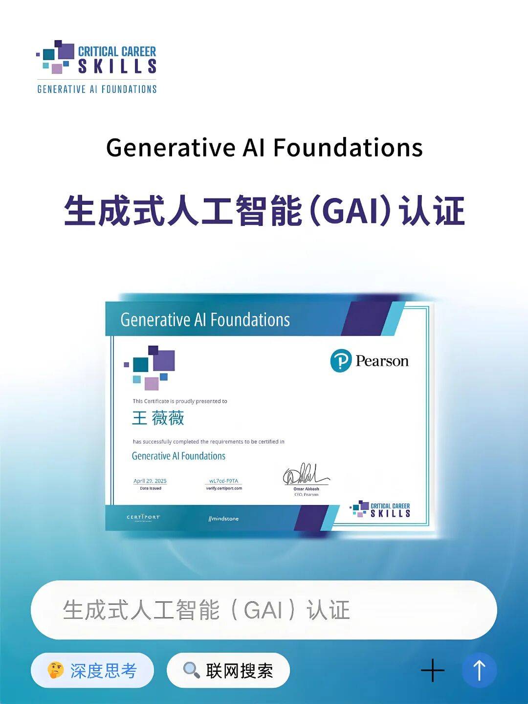 1. 培生GAI认证(生成式AI认证)