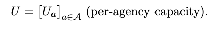 单代理机构容量:代理机构接收的保单数量不能超过其当前可处理的最大容量(Uₐ),即保单分配矩阵中每行的总和不超过该容量。
