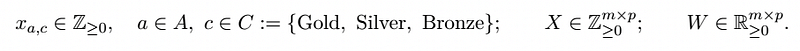 给定一组代理机构A和持续接入的保单流P,我们需要确定向每个代理机构、每个保单等级(黄金级Gold、白银级Silver、青铜级Bronze)分配的保单数量,在满足特定约束条件(代理机构容量、邮政编码适用性、保单总数量、惩罚机制等)的前提下,最大化总生产力。