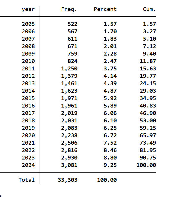 文件格式:Dta格式(使用Stata打开)、Xlsx格式(使用Excel打开)