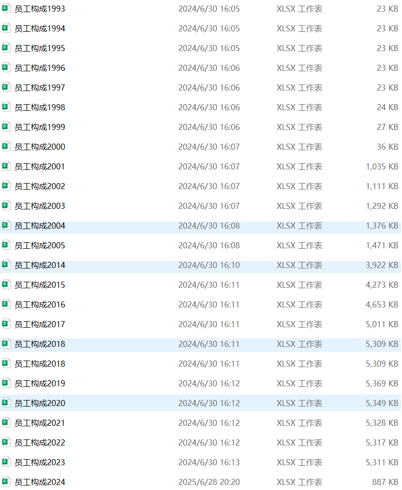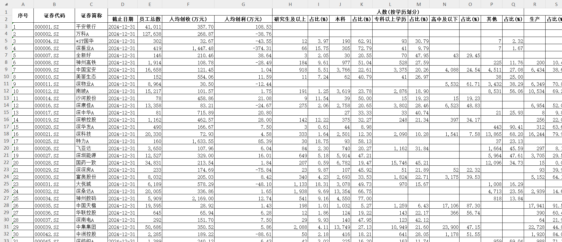 [经管数据集] 【数据集】1993-2024年上市企业员工构成,总数,人均创收,人数(按学历、职能部门划分) |
