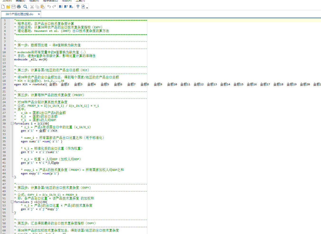 功能:计算38种农产品的出口技术复杂度