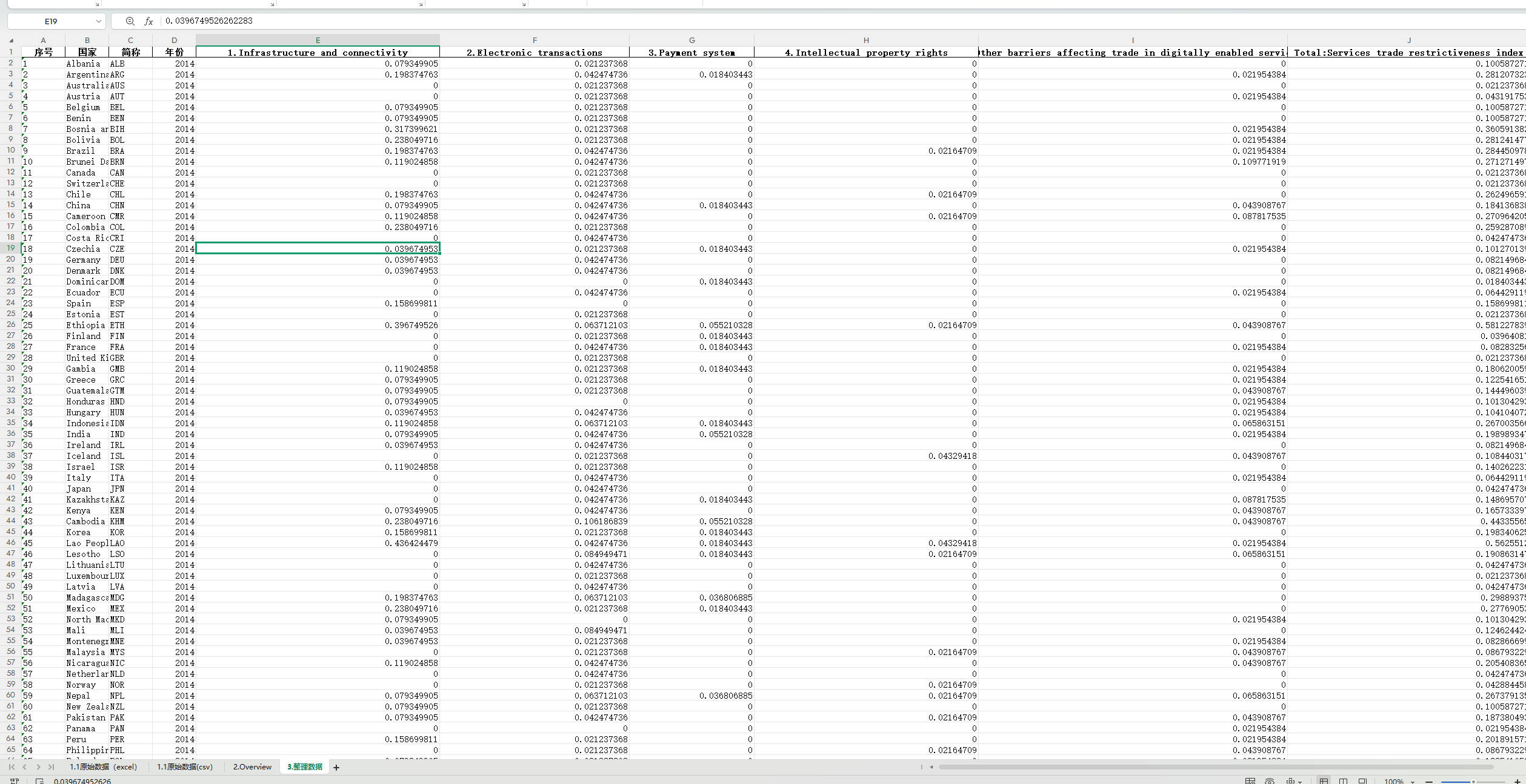 | DSTRI(数字贸易限制指数) | 数字贸易限制综合指数(0-1) |
