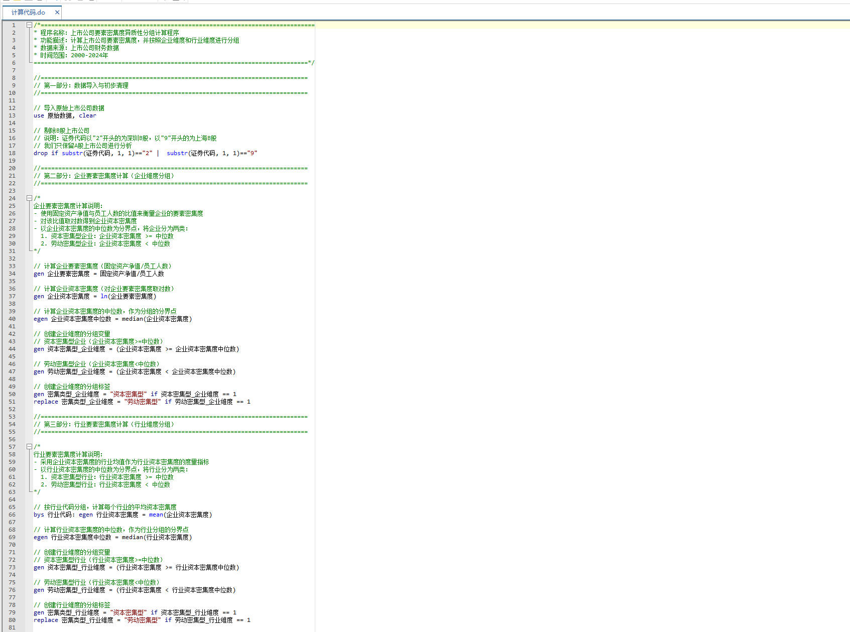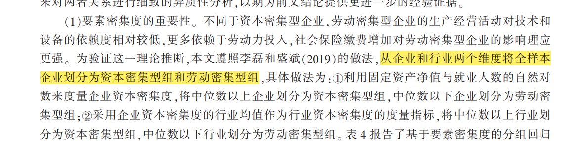 【劳动密集型_企业维度】将资本密集度小于其中位数的样本划分为劳动密集型企业