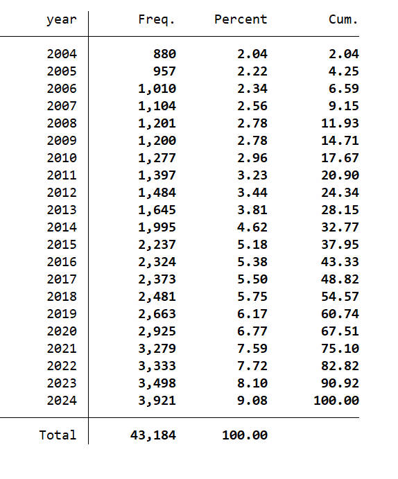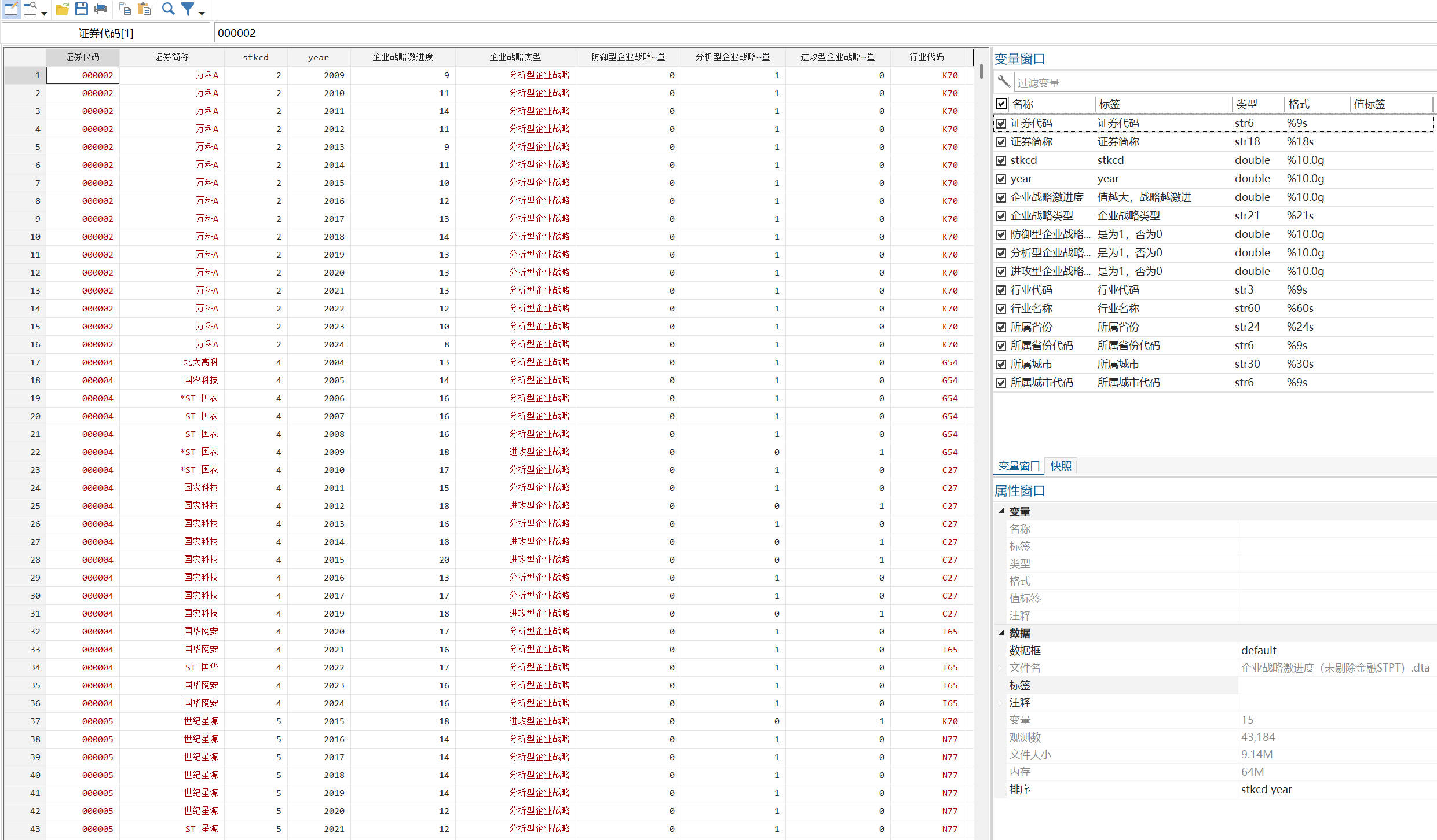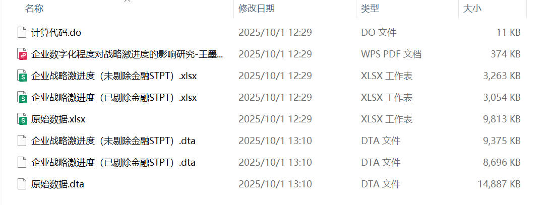 文件格式:Dta格式(使用 Stata打开)、Xlsx格式(使用 Excel打开)