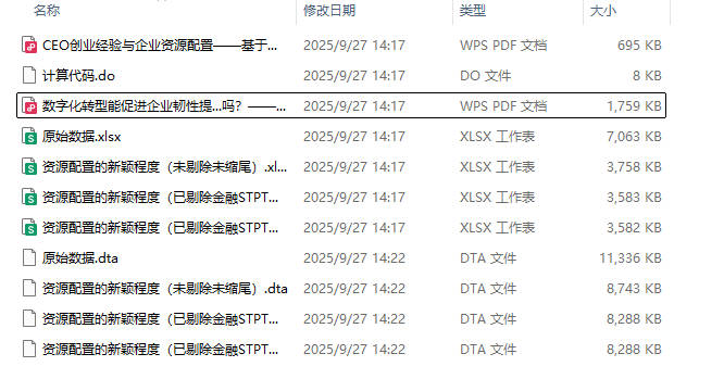 文件格式:Dta格式(使用Stata打开)、Xlsx格式(使用Excel打开)