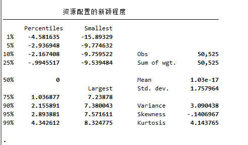 首先计算上述四个指标第t年和第t-1年差的绝对值,然后将绝对值取自然对数,将这四个指标标准化,相加构建一个单独的指标,再将这一指标与同一年度、同一行业的平均值做差,最终构建一个单独的指标用来测度资源配置的新颖程度。