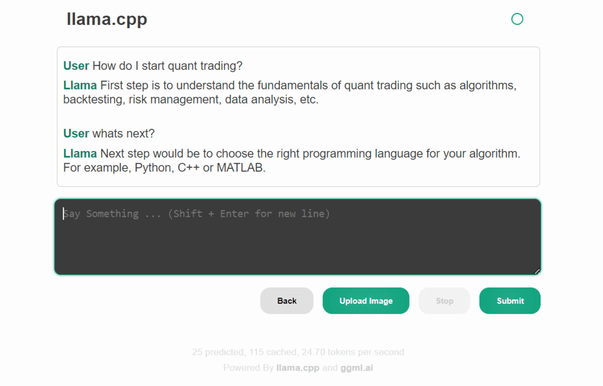 尽管模型在本地CPU上运行,但聊天界面响应迅速、流畅。至此,你的设备上已运行一个完全可用的本地AI服务器。