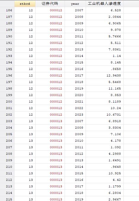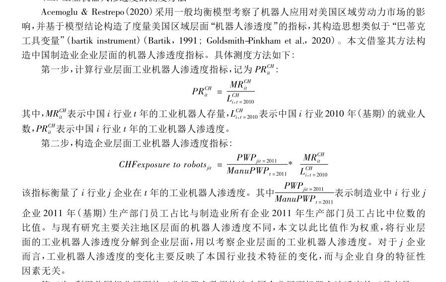 参考王永钦等(2020)计算方法计算行业层面的工业机器人渗透度指标;其次,构建企业层面的工业机器人渗透度指标;