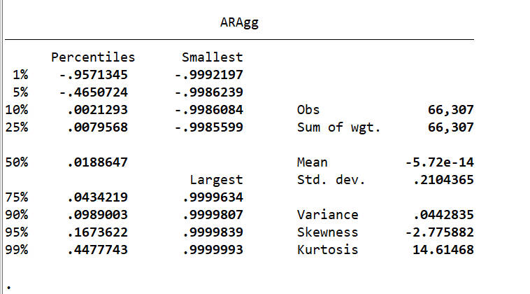 ②用模型(2)计算审计报告激进度,模型中的Actual opinion 表示的是注册会计师已经发表的审 计意见(当注册会计师发表非标准审计意见时,取值为1;当注册会计师发表标准审计意见时,取 值 为0)。ARAgg 表示的是审计报告的激进度,当ARAgg 为正时,表明审计报告的激进度比较高,审计质量比较低。