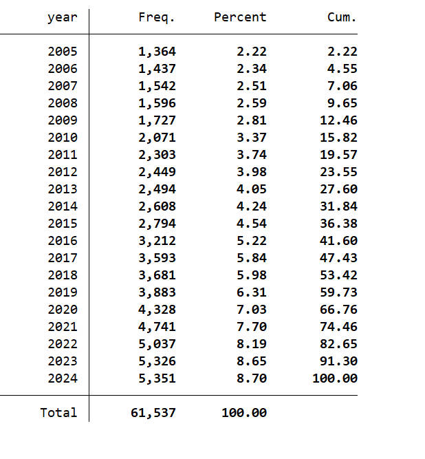 文件格式:Dta格式(使用Stata打开)、Xlsx格式(使用Excel打开)
