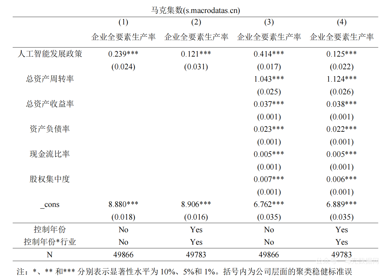 相关数据:国家新一代人工智能创新发展试验区DID,企业全要素生产率