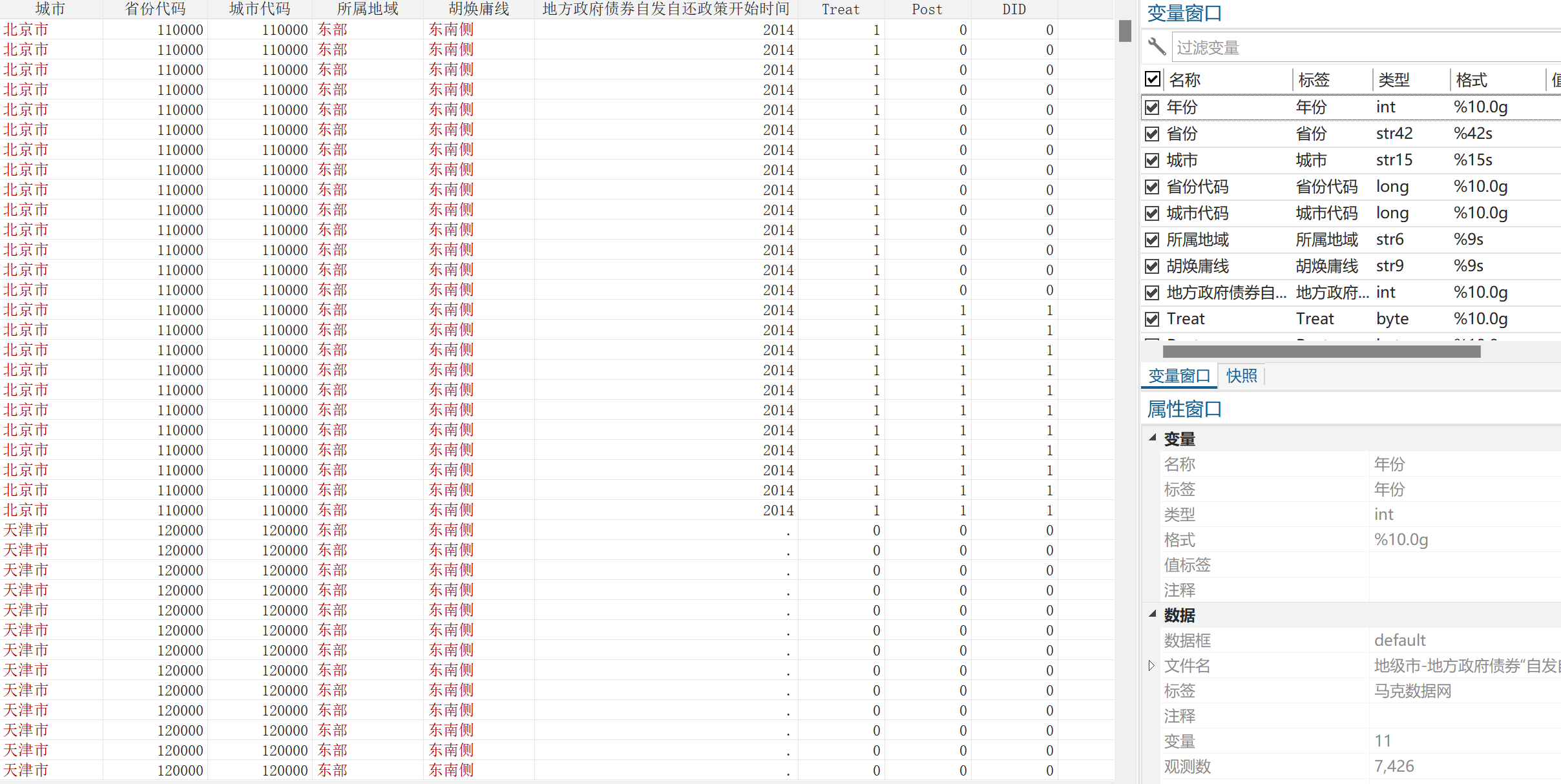 数据名称:地方政府债券“自发自还”政策DID数据
